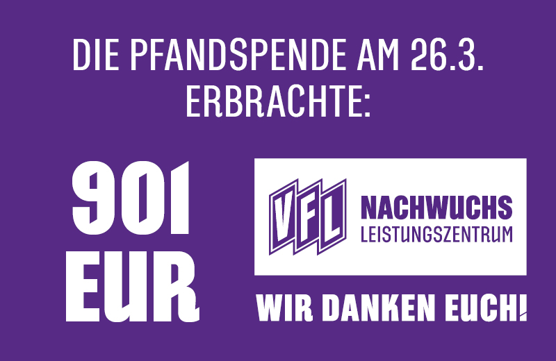 Beim Brückenabend gegen Borussia Mönchengladbach haben die Fans des VfL Osnabrück erneut ihr soziales Engagement unter Beweis gestellt: Insgesamt 901 Euro kamen durch Becherpfandspenden für den Nachwuchs der Lila-Weißen zusammen.
