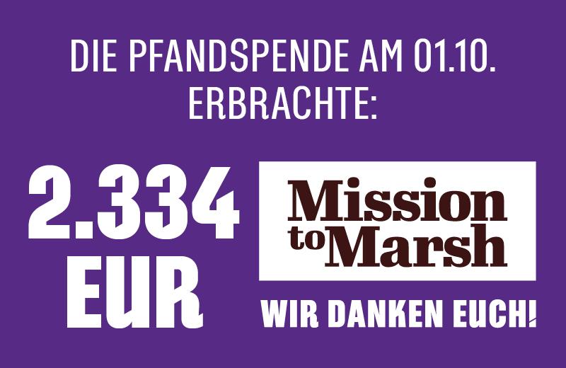 2.334 EUR Becherpfandspende für Mission To Marsh