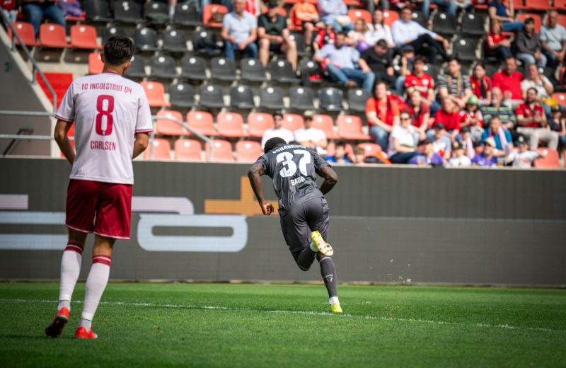 „Die Zahlen sprechen für sich. Deswegen beschwere ich mich da nicht“, gab sich Ismail Badjie am gestrigen Samstag am Mikrofon bei MagentaSport gelassen auf die Frage, ob er nicht gerne auch mal wieder in der Startelf stehen würde. Schließlich waren sechs seiner acht Saisontore Treffer zum 1:0, viermal blieb sein Tor, wie auch gestern, der einzige Treffer des Tages, und eben sechsmal traf der 20-Jährige nach Einwechslung. So kommt es nicht von ungefähr, dass der Flügelstürmer mittlerweile den Spitznamen „Decider“ unter den Mannschaftskollegen trägt. Dabei sorgten eben jene Mannschaftskollegen auch im Audi-Sportpark lange dafür, dass Badjie in der 61. Minute beim Stand von 0:0 in die Partie kam. In der Defensive rückte beispielsweise Theo Janotta für den gelbgesperrten Yigit Karademir in die Anfangsformation und legte prompt die beste Zweikampfquote aller VfL-Spieler (73,3 Prozent) an den Tag. In der Luft gewann der 1,96 m große Innenverteidiger gar alle seine Duelle. „Ich denke, am Anfang haben wir ein paar Minuten gebraucht, um reinzukommen. Aber als die Abstände dann da waren, haben wir gut das Spiel gemacht. Gerade in der zweiten Halbzeit sind wir dann immer besser ins Spiel gekommen, hatten Chancen zum Abschluss und dann das glücklichere Ende“, fasste der 22-Jährige selbst das Spiel nach seinem 15. Drittligaeinsatz im Interview bei VfL-TV zusammen.